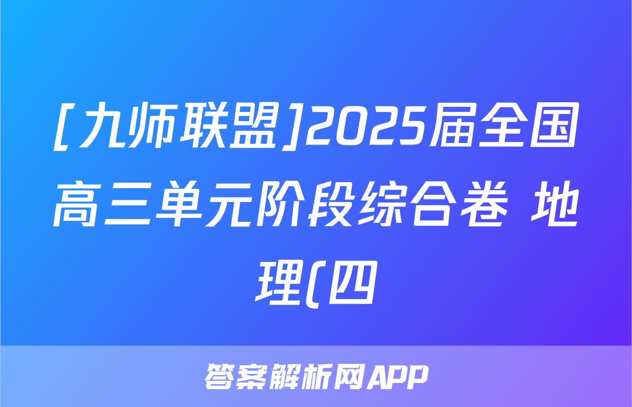 [九师联盟]2025届全国高三单元阶段综合卷 地理(四)4答案,目前2024卷临天下答案网已经汇总了[九师联盟]2025届全国高三单元阶段综合卷 地理(四)4答案的各科答案和试卷,获取更多{{papers_name}}答案解析,请在关注本站。