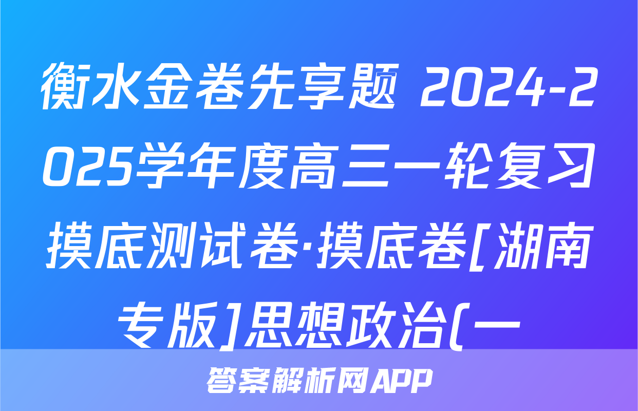 衡水金卷先享题 2024-2025学年度高三一轮复习摸底测试卷·摸底卷[湖南专版]思想政治(一)1试题,目前2024卷临天下答案网已经汇总了衡水金卷先享题 2024-2025学年度高三一轮复习摸底测试卷·摸底卷[湖南专版]思想政治(一)1试题的各科答案和试卷,获取更多{{papers_name}}答案解析,请在关注本站。