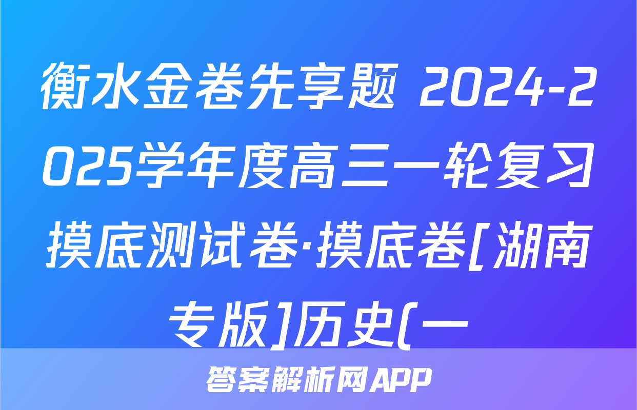 衡水金卷先享题 2024-2025学年度高三一轮复习摸底测试卷·摸底卷[湖南专版]历史(一)1试题,目前2024卷临天下答案网已经汇总了衡水金卷先享题 2024-2025学年度高三一轮复习摸底测试卷·摸底卷[湖南专版]历史(一)1试题的各科答案和试卷,获取更多{{papers_name}}答案解析,请在关注本站。