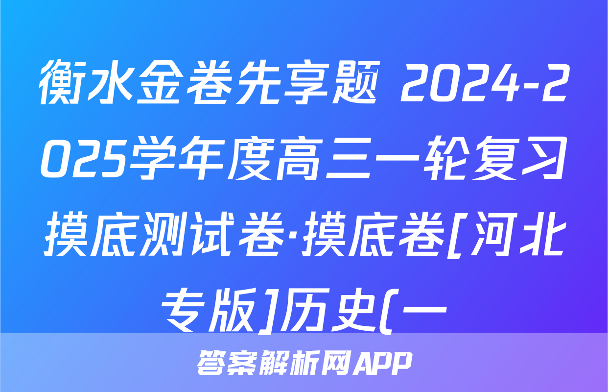 衡水金卷先享题 2024-2025学年度高三一轮复习摸底测试卷·摸底卷[河北专版]历史(一)1答案,目前2024卷临天下答案网已经汇总了衡水金卷先享题 2024-2025学年度高三一轮复习摸底测试卷·摸底卷[河北专版]历史(一)1答案的各科答案和试卷,获取更多{{papers_name}}答案解析,请在关注本站。