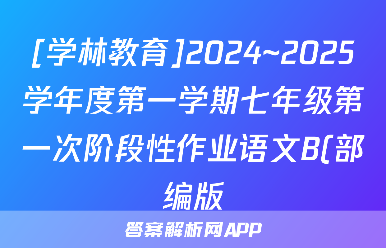 [学林教育]2024~2025学年度第一学期七年级第一次阶段性作业语文B(部编版)试题,目前2024卷临天下答案网已经汇总了[学林教育]2024~2025学年度第一学期七年级第一次阶段性作业语文B(部编版)试题的各科答案和试卷,获取更多{{papers_name}}答案解析,请在关注本站。