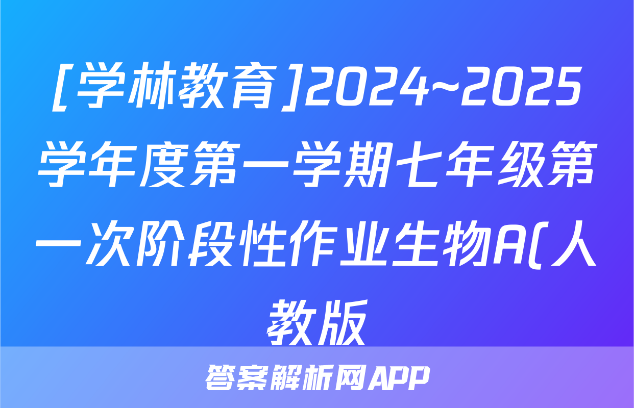 [学林教育]2024~2025学年度第一学期七年级第一次阶段性作业生物A(人教版)试题,目前2024卷临天下答案网已经汇总了[学林教育]2024~2025学年度第一学期七年级第一次阶段性作业生物A(人教版)试题的各科答案和试卷,获取更多{{papers_name}}答案解析,请在关注本站。
