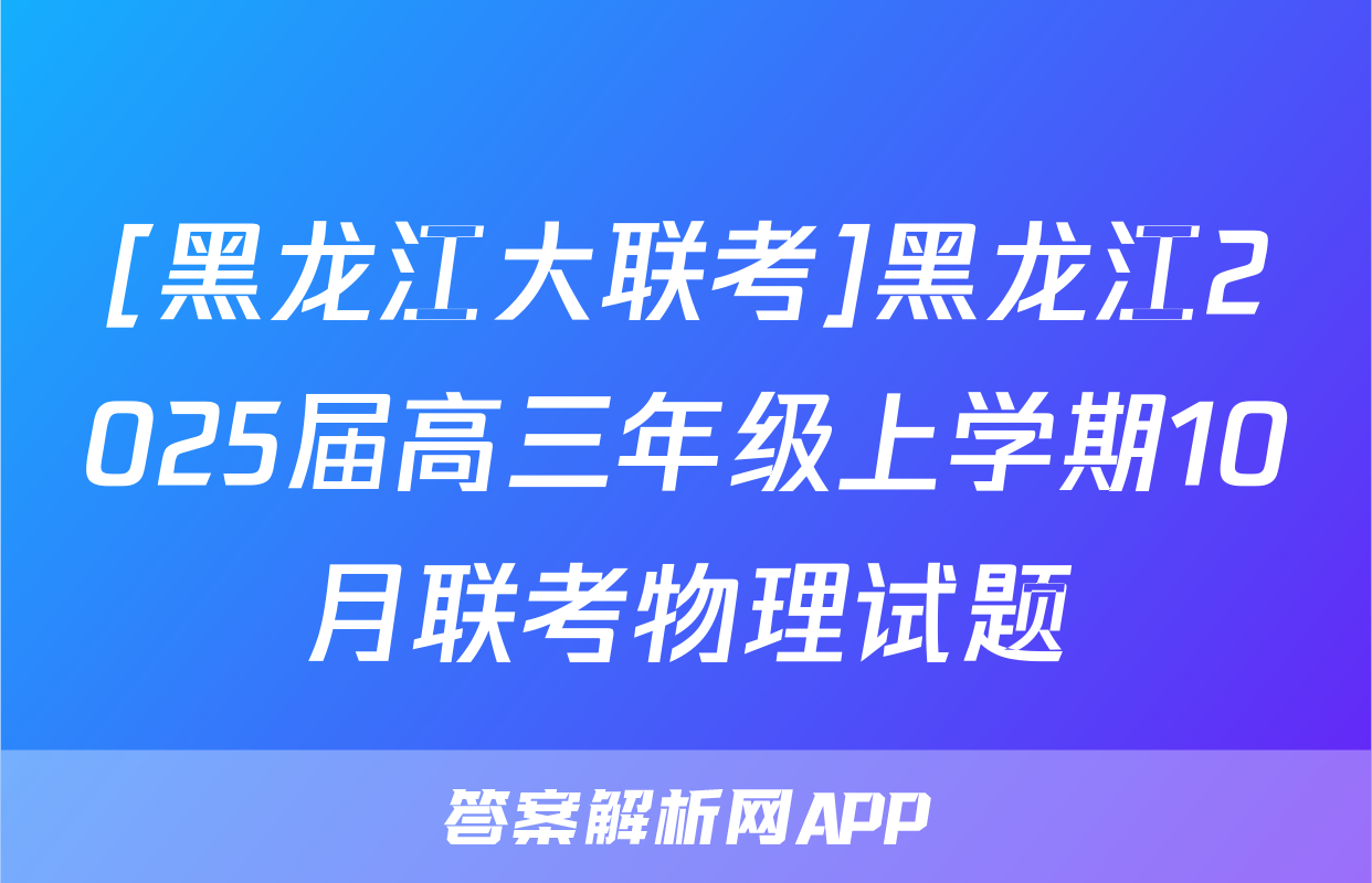 [黑龙江大联考]黑龙江2025届高三年级上学期10月联考物理试题,目前2024卷临天下答案网已经汇总了[黑龙江大联考]黑龙江2025届高三年级上学期10月联考物理试题的各科答案和试卷,获取更多{{papers_name}}答案解析,请在关注本站。
