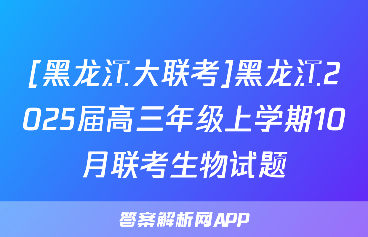 [黑龙江大联考]黑龙江2025届高三年级上学期10月联考生物试题,目前2024卷临天下答案网已经汇总了[黑龙江大联考]黑龙江2025届高三年级上学期10月联考生物试题的各科答案和试卷,获取更多{{papers_name}}答案解析,请在关注本站。