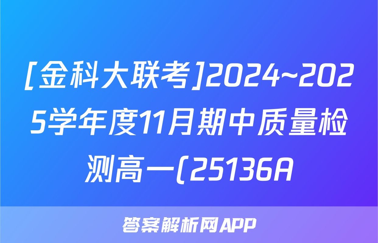 [金科大联考]2024~2025学年度11月期中质量检测高一(25136A)语文试题,目前2024卷临天下答案网已经汇总了[金科大联考]2024~2025学年度11月期中质量检测高一(25136A)语文试题的各科答案和试卷,获取更多{{papers_name}}答案解析,请在关注本站。