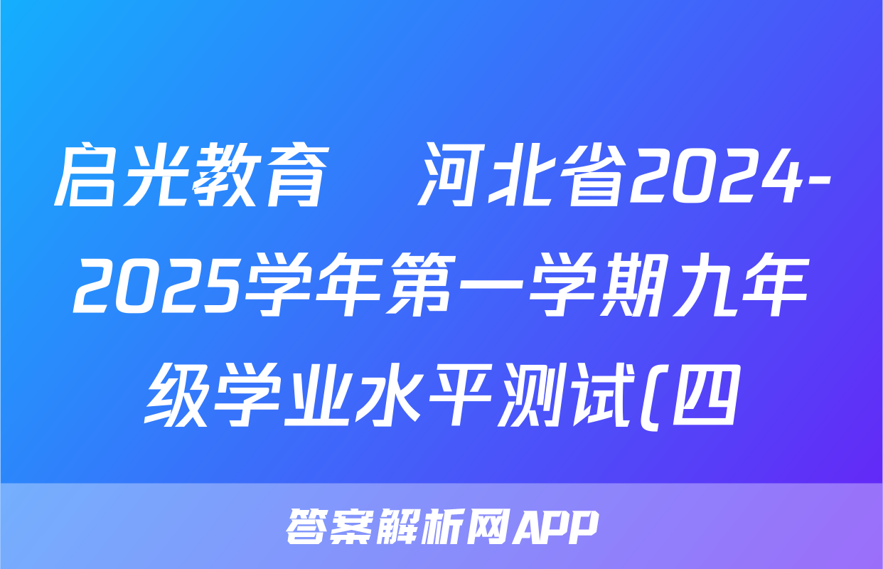 启光教育•河北省2024-2025学年第一学期九年级学业水平测试(四)(期末考试)化学试题,目前2024卷临天下答案网已经汇总了启光教育•河北省2024-2025学年第一学期九年级学业水平测试(四)(期末考试)化学试题的各科答案和试卷,获取更多{{papers_name}}答案解析,请在关注本站。
